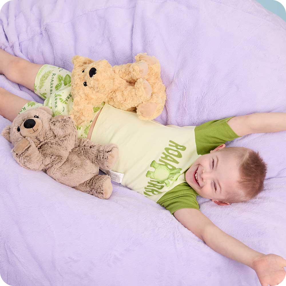 Drift off to dreamland with Dinosaur Shorties Pajamas! Lightweight, breathable cotton blend (95% cotton, 5% spandex) PJs, designed for warm nights and sensory comfort, ensuring peaceful sleep without a fuss.Little ones will love the super soft, tagless design and adorable prints of their favorite Warmies characters. The pajama sets feature a stretch elastic waistband for a secure fit that makes them easy to get in and out of. Say goodbye to scratchy tags – our Warmies label is printed directly on the fabric for sensory comfort. With 30+ years of experience designing quality products that are safe for kids, you can rest easy knowing your child is sleeping in the comfort of Warmies.