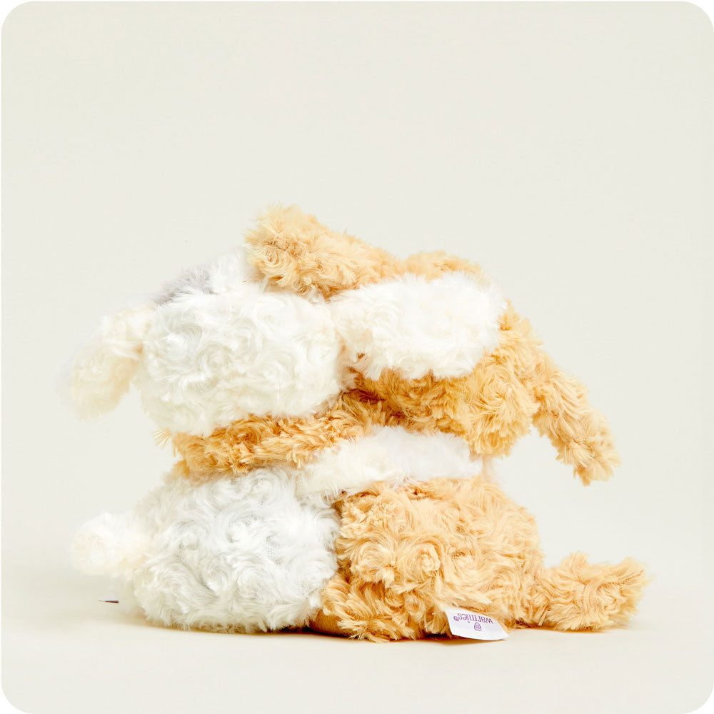 Twice the tail wags, twice the comfort! Warmies® Puppy Hugs are a super cute microwavable duo that are gently scented with French lavender. Their arms wrap around each other and attach with Velcro making them perfect for mixing and matching to other Warmies® Hugs characters. You can also attach these playful pups anywh